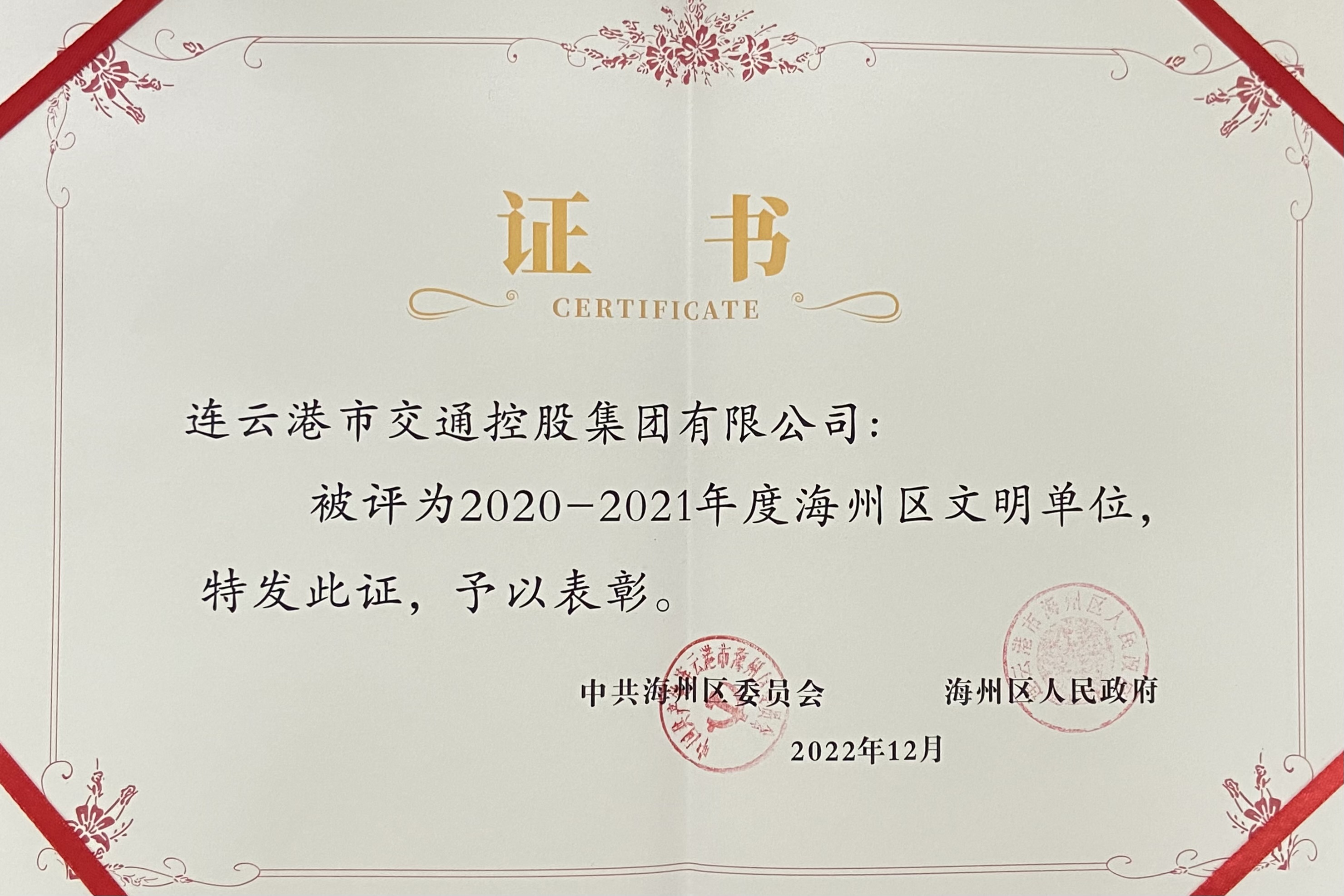 中共連云區(qū)委、連云區(qū)人民政府授予以下集團(tuán)權(quán)屬單位2020-2021年度連云區(qū)文明單位榮譽(yù)稱號: