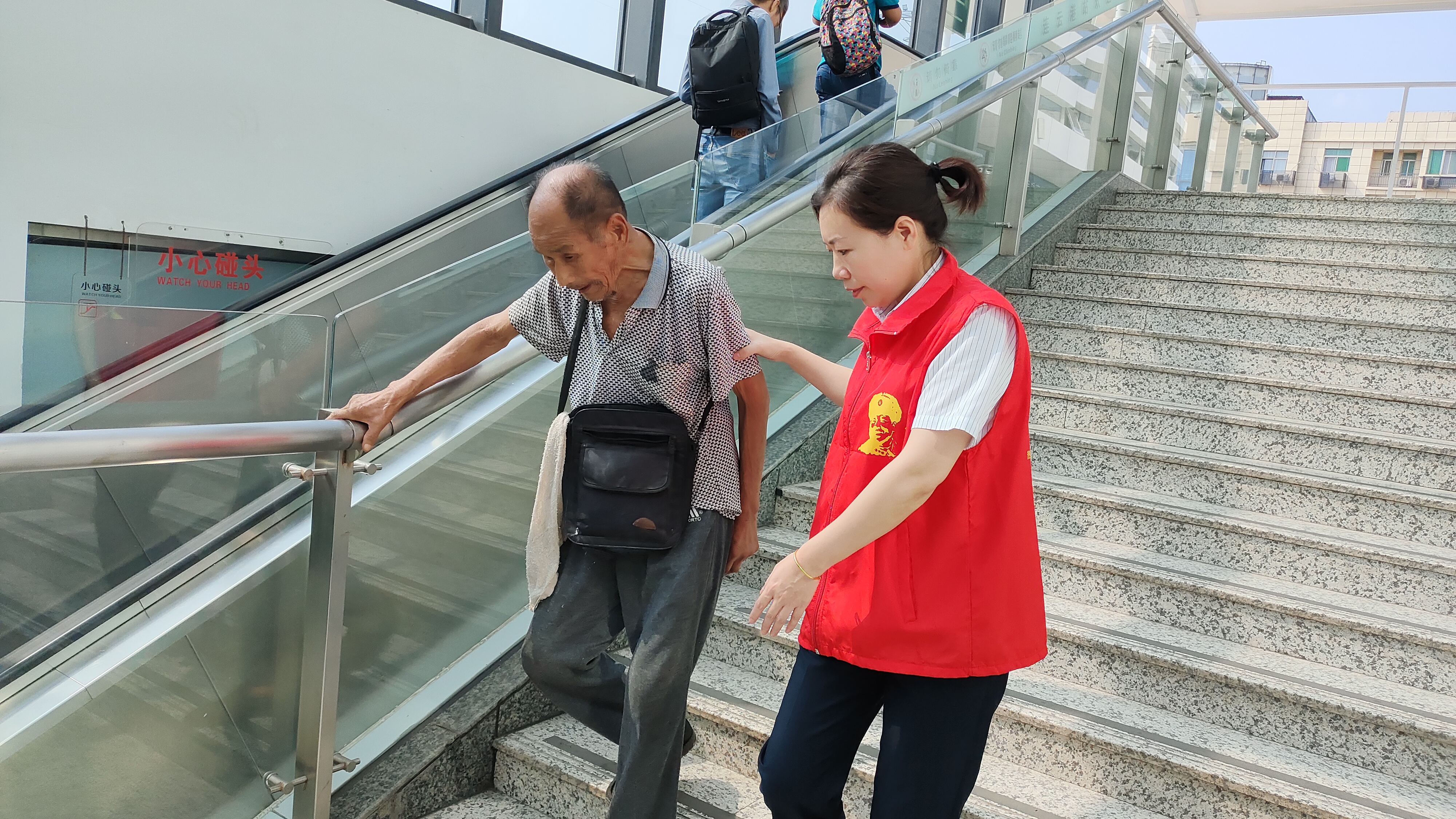 “我要去高鐵站找醫(yī)生看病,我侄女婿在高鐵站上班……”,9月11日上午9時,連汽“雷鋒車”驛站前有一對老人,互相攙扶著,在出站口徘徊,嘴里不停地念叨著要找人。
