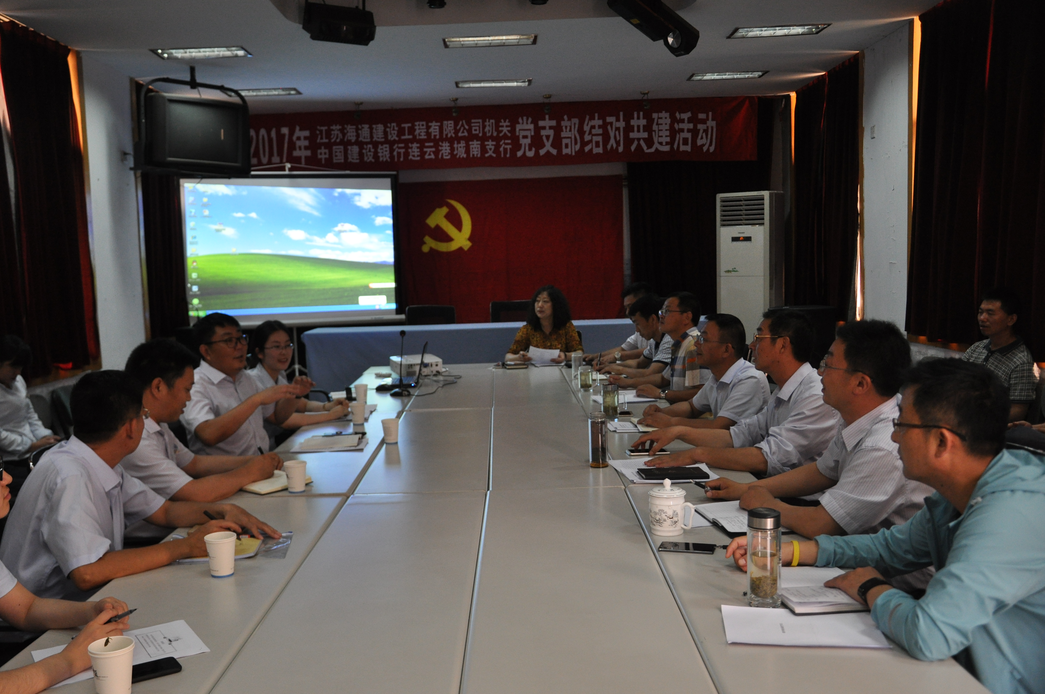 為深入推進(jìn)“兩學(xué)一做”學(xué)習(xí)教育常態(tài)化、制度化,堅持黨建工作和黨委中心工作深度融合,實現(xiàn)基層黨建工作共建雙贏,6月30日下午,海通公司機關(guān)黨支部與中國建設(shè)銀行連云港城南支行黨支部開展結(jié)對共建活動,參加活動的有市建行連云港分行黨委組織部副部長王亞光、建行城南支行行長卞光好,海通公司董事長茅紅兵、黨委書記高明兆、總經(jīng)理王梁洲及公司部分黨員,共23名人員。