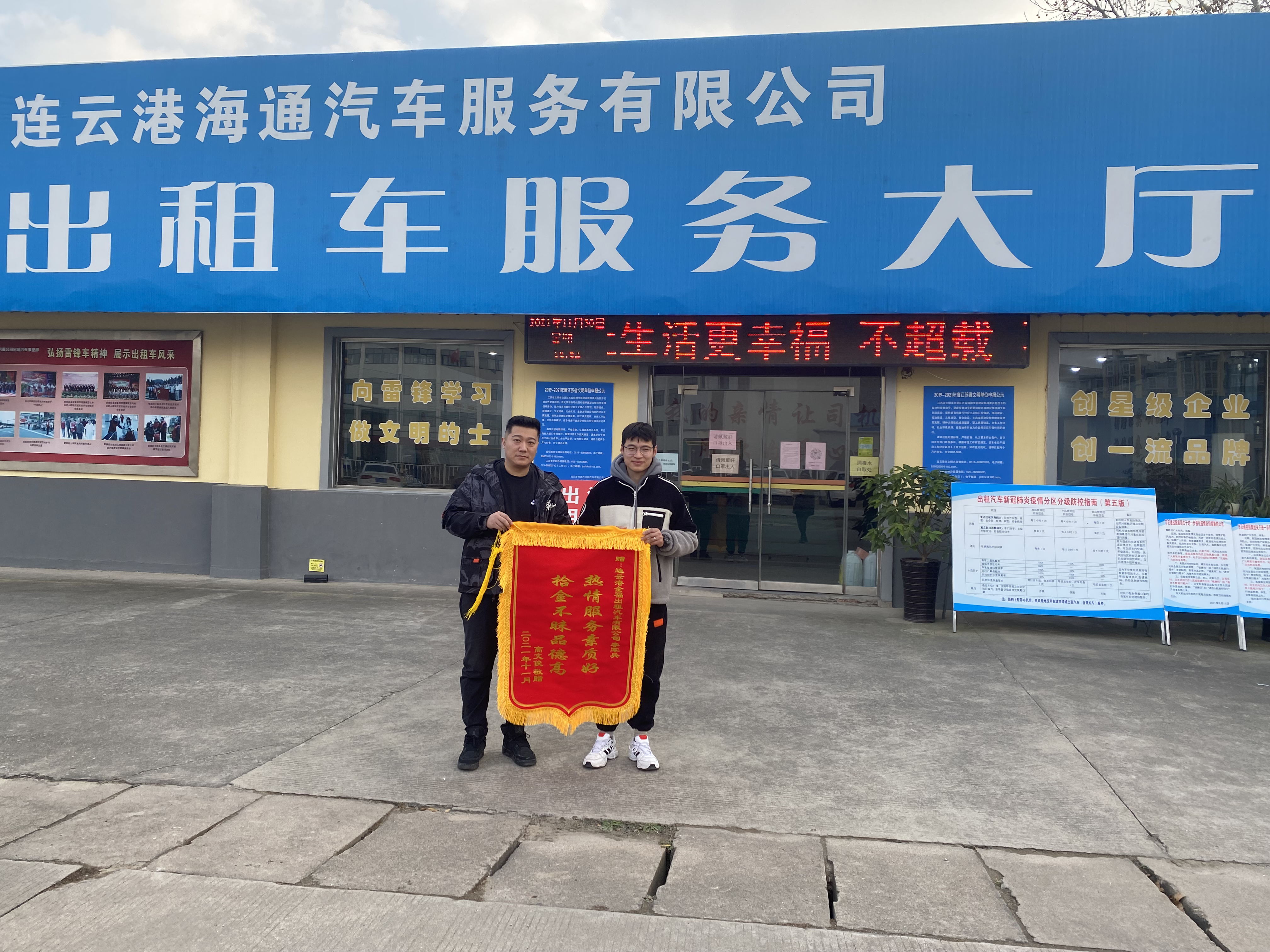 “原本以為筆記本電腦肯定找不回來了,沒想到的哥李軍兵兩天前就將電腦送到貴公司失物招領處,給我的一個大大的驚喜,多謝拾金不昧的好的哥李師傅。”2021年11月30日下午,市民高先生親自將“熱情服務素質好、拾金不昧品德高”錦旗送到了全福出租公司,希望公司表揚蘇G55830的哥李軍兵的拾金不昧行為。