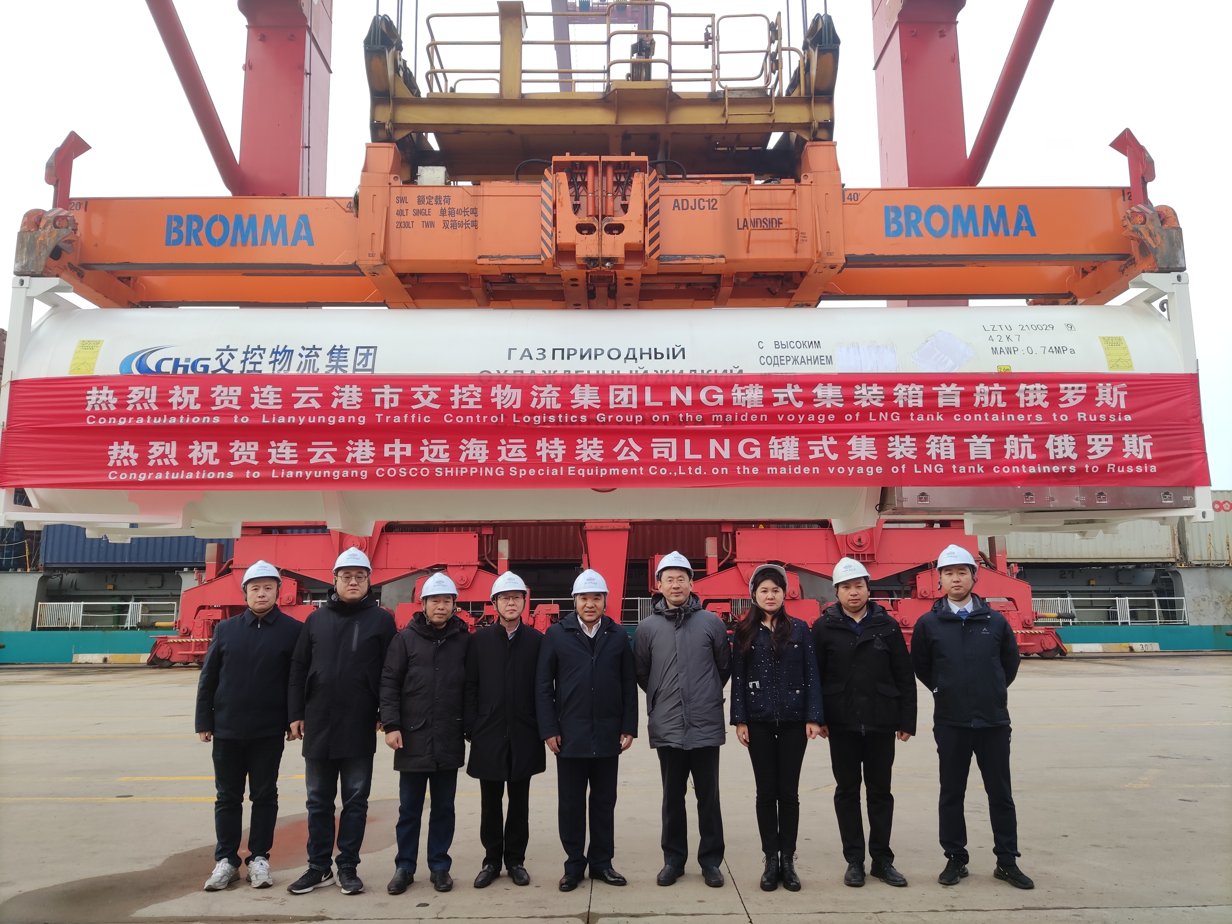 發(fā)運(yùn)儀式前,物流集團(tuán)、特裝公司、新東方貨柜三方領(lǐng)導(dǎo)及相關(guān)工作人員在新東方貨柜碼頭公司三樓會(huì)議室就物流集團(tuán)開展的LNG“購、運(yùn)、儲(chǔ)、銷、制”全產(chǎn)業(yè)鏈發(fā)展模式進(jìn)行了深入的意見交流,對(duì)物流集團(tuán)未來開展整船LNG罐箱發(fā)運(yùn)及航線的開辟表示了殷切的期待。交流會(huì)后,三方領(lǐng)導(dǎo)共同出席發(fā)運(yùn)裝船儀式,物流集團(tuán)總經(jīng)理張國興與特裝公司總經(jīng)理張學(xué)坤在碼頭前沿完成了LNG罐箱的交付儀式。隨著物流集團(tuán)總經(jīng)理張國興宣布的“起吊,裝船!”,交控物流LNG罐式集裝箱首航俄羅斯正式發(fā)運(yùn),這是繼物流集團(tuán)與青遠(yuǎn)共同合資的中遠(yuǎn)海運(yùn)特種裝備公司生產(chǎn)的LNG罐箱首航加拿大后,又一條新航線的開辟,預(yù)示著物流集團(tuán)LNG產(chǎn)業(yè)鏈多點(diǎn)多線發(fā)展的新格局。