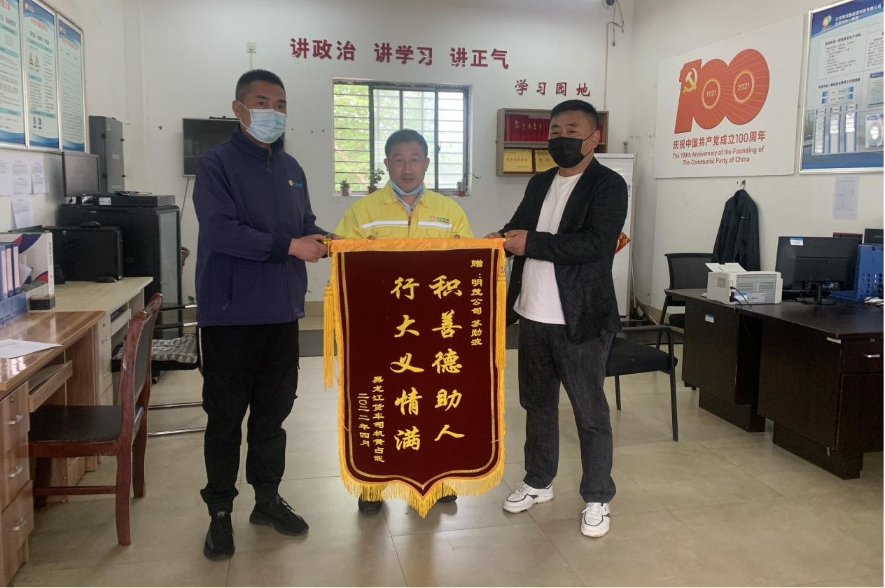 被困司機(jī)黃占武康復(fù)后第一時(shí)間來(lái)到明茂公司充電站給蘇勛波送上錦旗。他表示錦旗雖小,但是情義無(wú)價(jià),除了表達(dá)對(duì)蘇勛波的感激之情,也對(duì)眀茂公司有這樣高尚品質(zhì)的職工表達(dá)崇高的敬意!