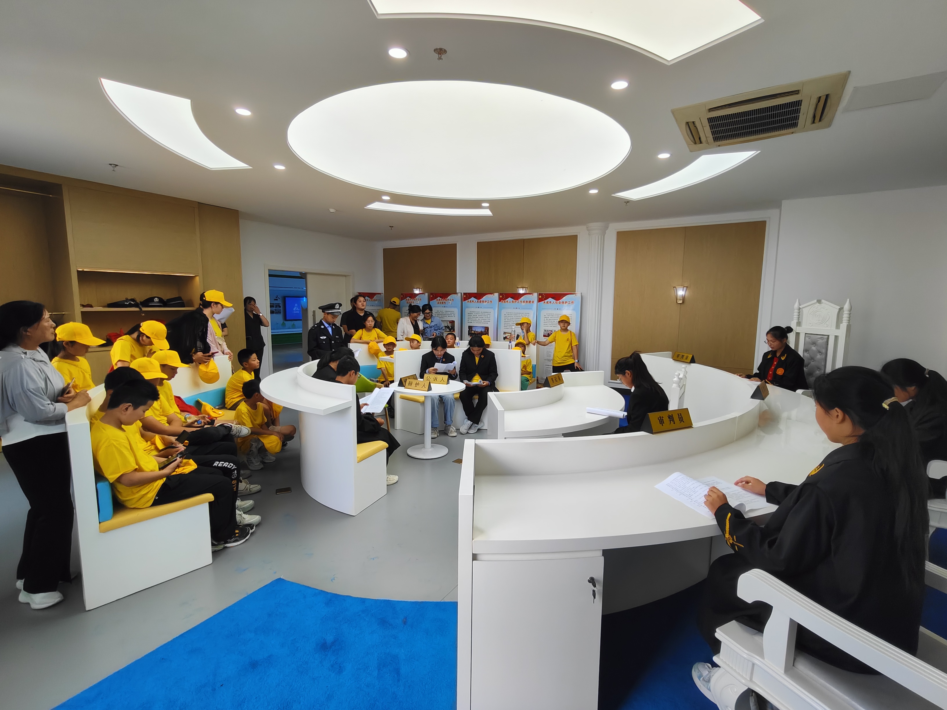 孩子們在海州區(qū)人民法院參觀了連云港市青少年法治教育實(shí)踐基地。在模擬法庭環(huán)節(jié),孩子們穿上工作服,認(rèn)真模擬開庭流程,親身感受法律的威嚴(yán),在孩子們的心里種下“法”的種子。