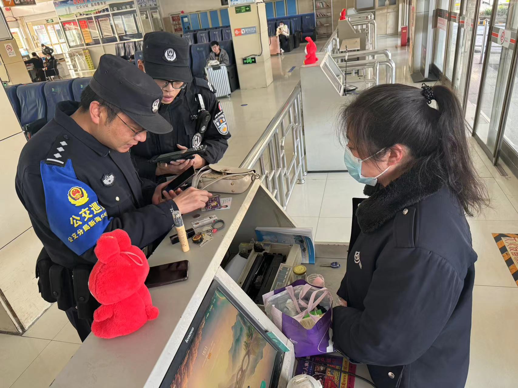 12月14日,站務員李寧在檢票口附近發(fā)現了一個米黃色皮質肩包掉落在角落無人問津,“這是哪位旅客的背包?”問了幾遍,大廳內的旅客都搖頭說不是自己的!于是,李寧馬上通知廣播室播報失物招領,并將背包交到車站服務中心進行遺失物品登記。報警后,李寧同公交派出所民警一起檢查包內物品,通過包里證件,警察找到了張女士。