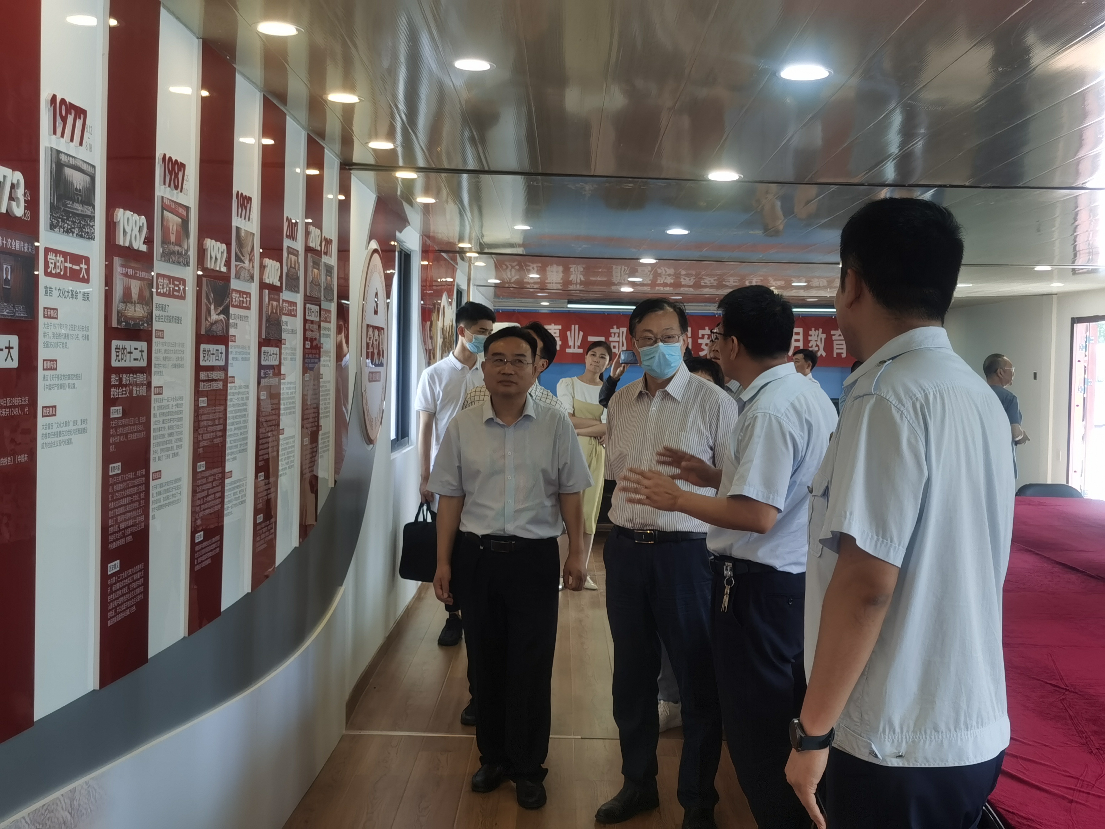 王學慶一行首先參觀了公交“紅色驛站”黨員活動室、“中共連云港黨史文化墻”等黨建亮點特色區(qū)域,詳細詢問了解支部在黨史學習推進、開展等過程中的具體思路和做法,進行了交流和探討。