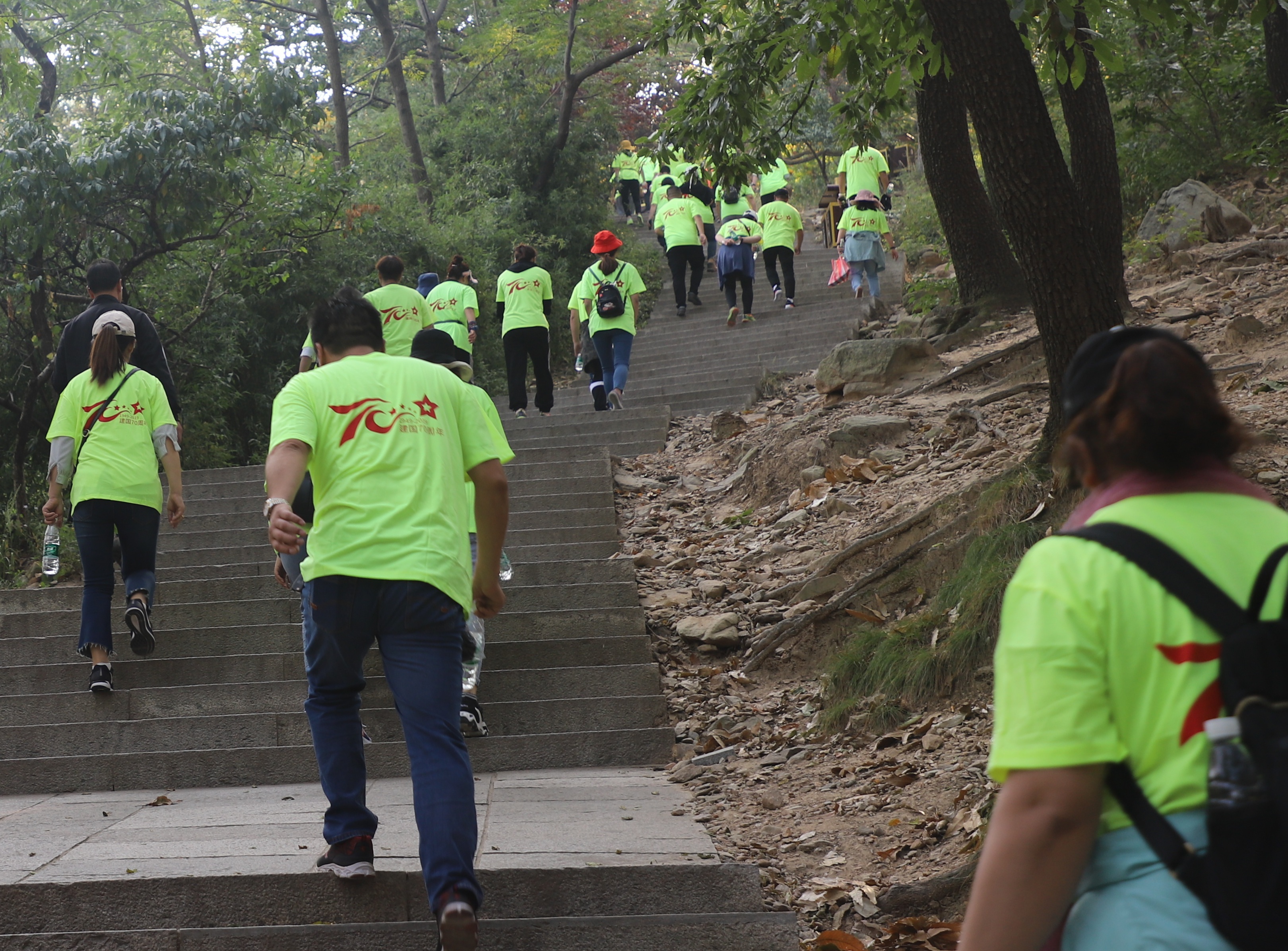 途中,大家興高采烈,談笑風(fēng)生,時(shí)而你追我趕、奮力攀爬,時(shí)而互相鼓勵(lì)、攜手并進(jìn),整個(gè)登山過程洋溢著溫馨、愉悅的氛圍,大家享受著登山的樂趣,向終點(diǎn)進(jìn)發(fā)。從花果山山門到九龍橋,最考驗(yàn)大家體力的是十八盤,十八盤位于花果山腰部的竹節(jié)嶺上,349級(jí)石階層層相迭,巧相搭構(gòu),通向嶺端,隨著高度的不斷攀升,加之蜿蜒崎嶇的山路起伏跌宕,不少職工累的氣喘吁吁,大汗淋漓,但是大家仍然興致盎然,朝著目標(biāo),不停地向上攀登。