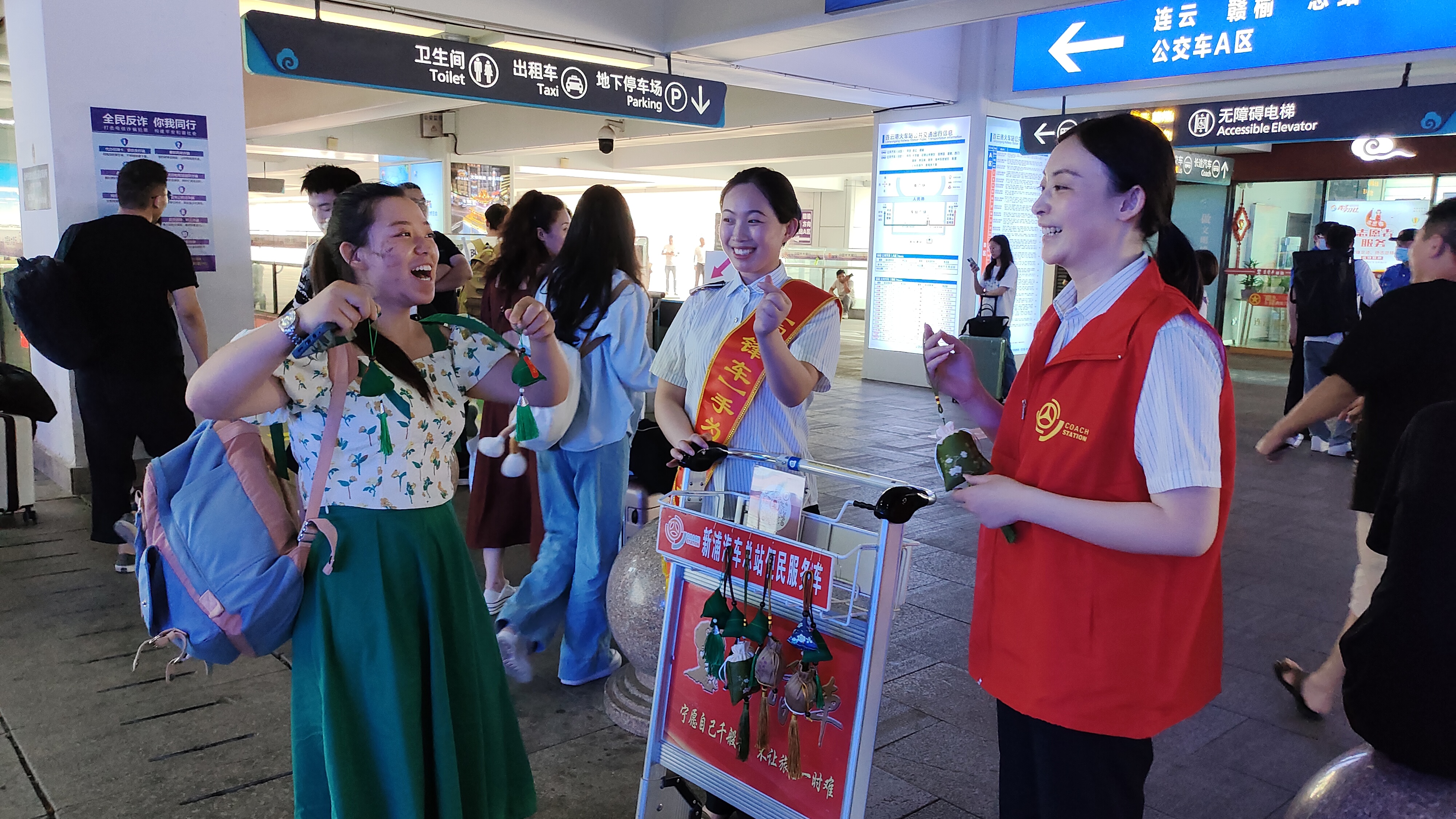 端午節(jié),連汽“雷鋒車(chē)”組開(kāi)展了“端午送祝?!馇榧陌部怠被顒?dòng),讓南來(lái)北往的旅客感受到節(jié)日氣氛和端午文化的魅力。
