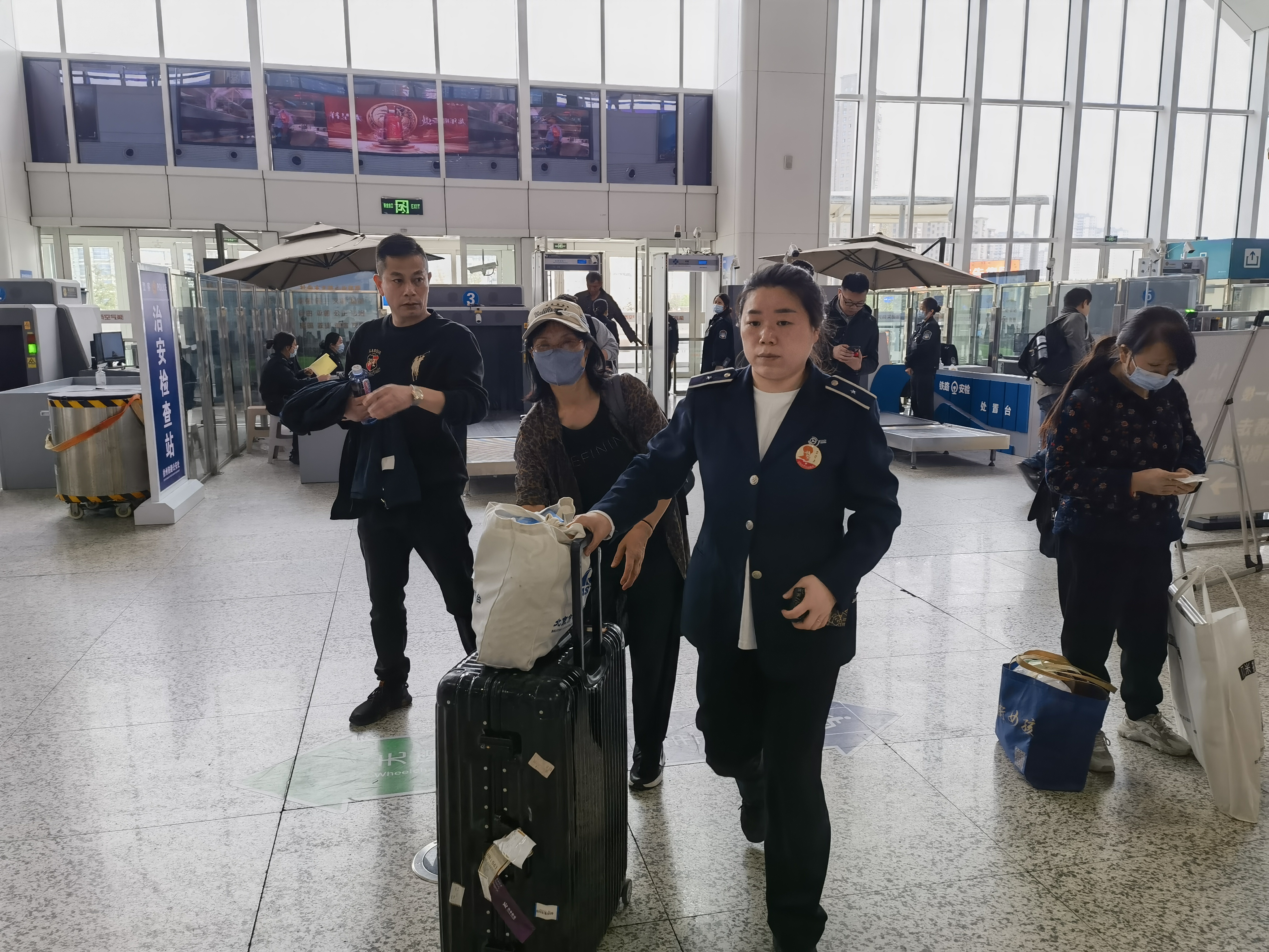 原來(lái),這對(duì)老夫婦準(zhǔn)備乘坐高鐵去日照探親,但由于身體原因和攜帶行李較多,擔(dān)心無(wú)法及時(shí)趕上車(chē)。在了解具體情況后,“雷鋒車(chē)”手羋丹和呂紅立即行動(dòng)起來(lái),她們?nèi)?lái)輪椅,小心翼翼地幫助老人坐上輪椅并整理好行李。她們一路陪伴老人至高鐵站,協(xié)助完成驗(yàn)票、行李查驗(yàn)等流程,并與高鐵站工作人員溝通協(xié)調(diào),確保老人順利登車(chē)后才放心離開(kāi)。