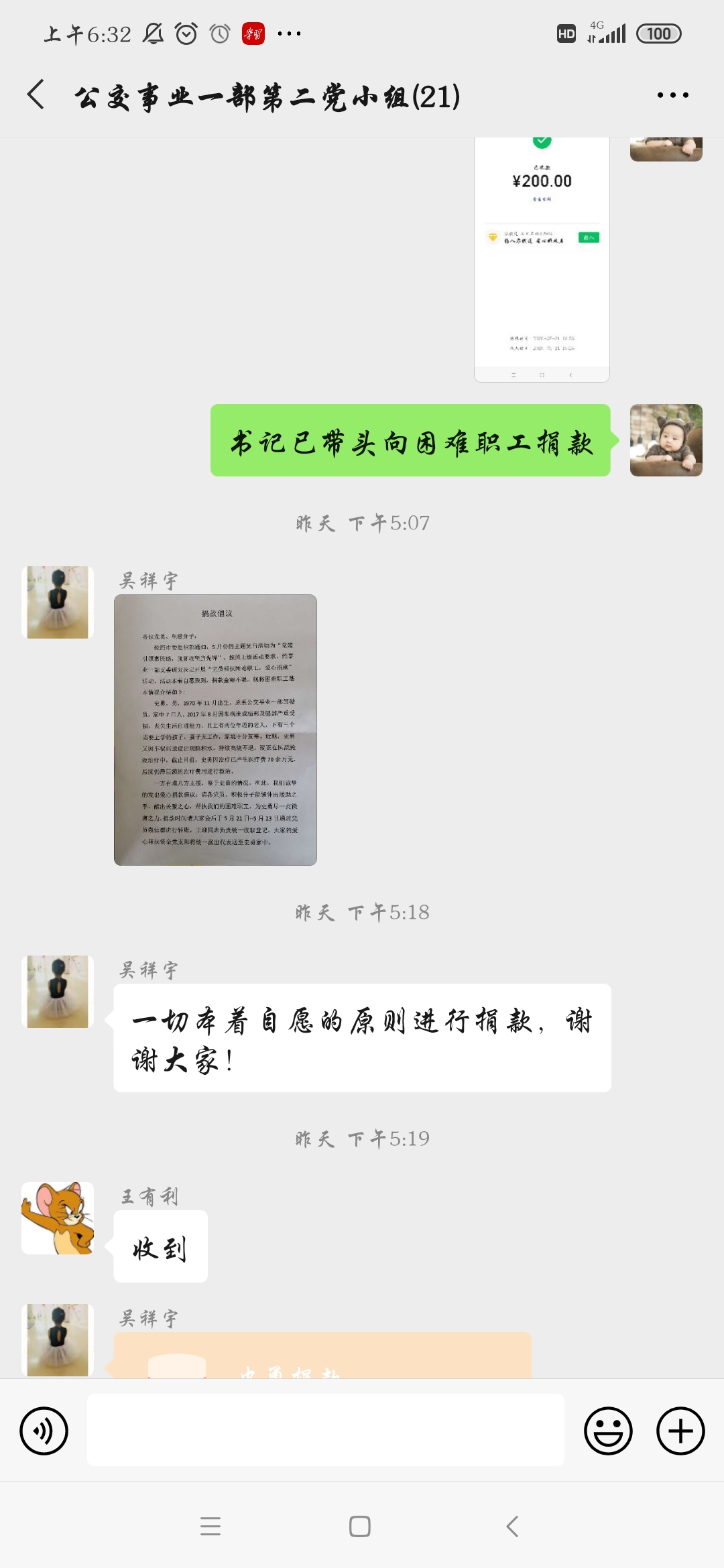 一方有難八方支援,5月21日黨支部第一時(shí)間發(fā)出黨員愛(ài)心捐款倡議,號(hào)召?gòu)V大黨員干部充分發(fā)揮先鋒模范的表率作用,為史勇捐助善款,伸出援助之手,獻(xiàn)出一份愛(ài)心,幫助他戰(zhàn)勝病魔,挽回寶貴生命。在支部書(shū)記王有利、副書(shū)記朱華麗的帶領(lǐng)下,公交事業(yè)一部40名黨員、12名積極分子參與此次募捐幫扶活動(dòng),共計(jì)捐款3230元。