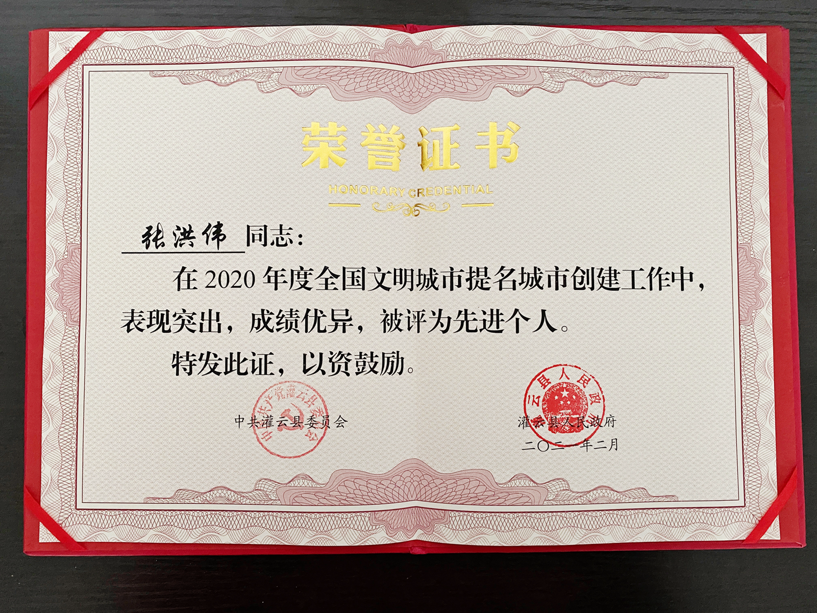 2月22日,連汽灌云公司副經(jīng)理張洪偉同志獲灌云縣政府“全國文明城市提名城市創(chuàng)建工作先進(jìn)個人”榮譽稱號。