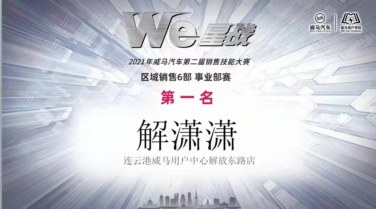此次比賽從理論考試、知識(shí)搶答、情景模擬三大項(xiàng)進(jìn)行比拼。情景模擬內(nèi)容圍繞需求分析、產(chǎn)品介紹、議價(jià)成交展開多維度挖掘參賽選手的實(shí)力與風(fēng)采??简?yàn)的是選手扎實(shí)的理論知識(shí)功底以及服務(wù)中的應(yīng)變能力。在比賽前期,解瀟瀟精心準(zhǔn)備,全力備戰(zhàn),向著店里定下的保二爭(zhēng)一的目標(biāo),在賽場(chǎng)上沉著冷靜,全身心投入比賽。經(jīng)歷一天的比拼,歷經(jīng)重重的考驗(yàn),明茂汽車銷售公司服務(wù)大使解瀟瀟榮獲“威馬汽車服務(wù)大使技能比賽東部賽區(qū)第一名”。