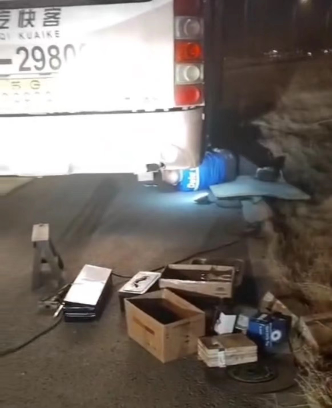 3月25日晚9點多,徐圩通勤班車蘇G29809在下班途中突然無法行駛,停在了徐圩跨海大橋的橋頭。情況發(fā)生后,通勤項目組緊急聯(lián)系頂班車輛,優(yōu)先輸送客戶。同時考慮恰逢周末,車輛緊缺,于是與市場部維修副部長朱斌取得了聯(lián)系,朱彬了解車輛及第二天車輛配置情況后,立即孤身一人攜帶搶修工具火速趕往徐圩現(xiàn)場。經(jīng)過檢查確定車輛離合器片損壞,需要立即更換離合器片,可更換離合器片不是一個小工程,在維修條件都達到的情況下2-3人也要耗時7-8小時才能完成,而此時維修隊的工人已經(jīng)下班了。為了保障通勤車第二天能正常運營,朱彬決定由駕駛員吳建軍作為維修助手配合現(xiàn)場開始修理。