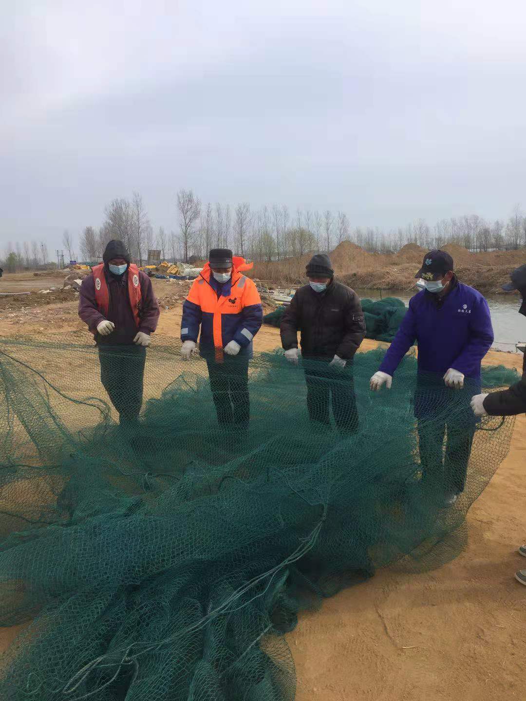 疫情期間,漁業(yè)碼頭實(shí)行全封閉管理,工作人員設(shè)置警示牌和隔離墩,禁止外來人員進(jìn)場。作業(yè)人員,按照要求帶好口罩,并認(rèn)真、仔細(xì)的目視檢查好網(wǎng)衣,確保網(wǎng)衣完好無損,下水作業(yè)時穿好救生衣,確?,F(xiàn)場作業(yè)安全施工。巡庫人員不辭辛勞,加強(qiáng)白天巡視,防止周邊村民下網(wǎng)捕魚。